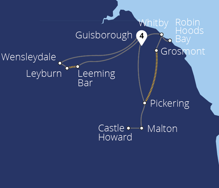 tour of Yorkshire would not be complete without a visit to the seaside town of Whitby, which lies on the North Yorkshire coastline and is famous as the home town of Captain James Cook. You can visit Whitby by train on a rail holiday with Great Rail Journeys, as part of a tour of Yorkshire and Northumberland. The town has been immortalised is Bram Stoker's Dracula - it is where Dracula arrived in Britain in the author's famous novel.