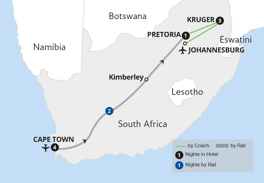 Join us on this sensational tour of Southern Africa, from the glorious Victoria Falls to the multicultural city of Cape Town, with fantastic wildlife viewing in Botswana's Chobe National Park and Nambiti Reserve in Kwa-Zulu Natal. Added to these superb experiences, a rail journey from the city of Pretoria to the coastal metropolis of Durban on...
