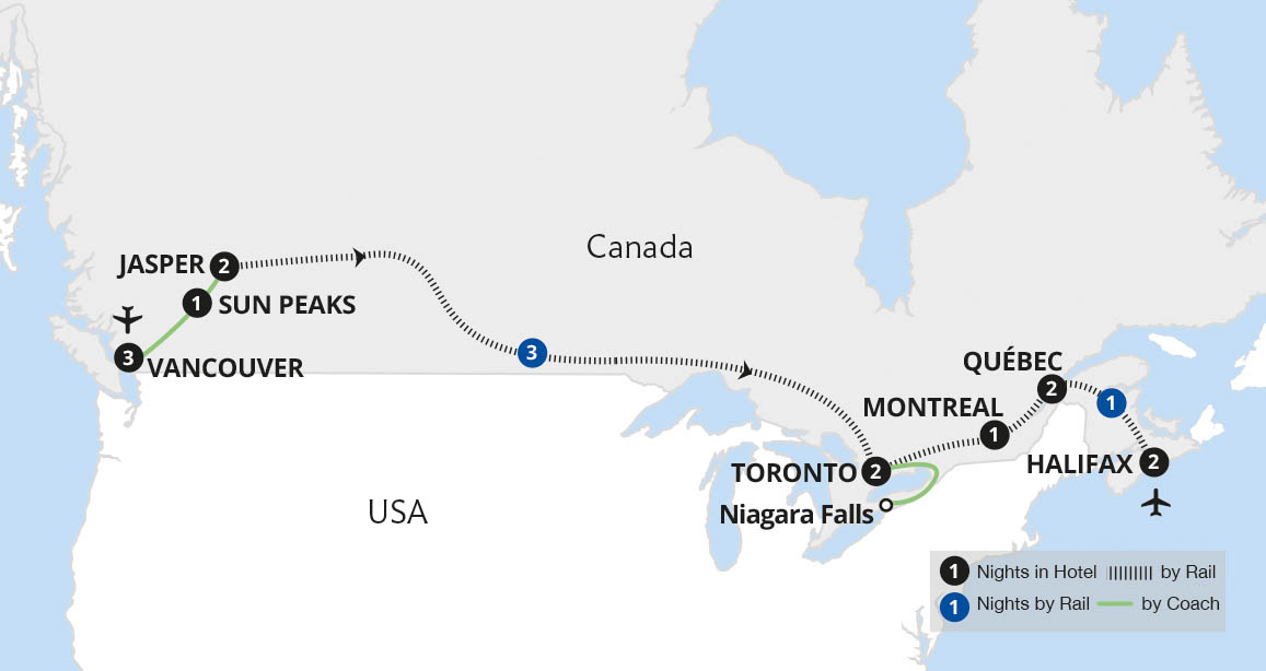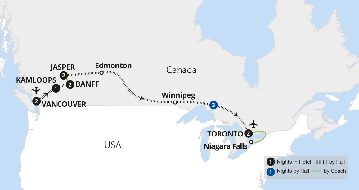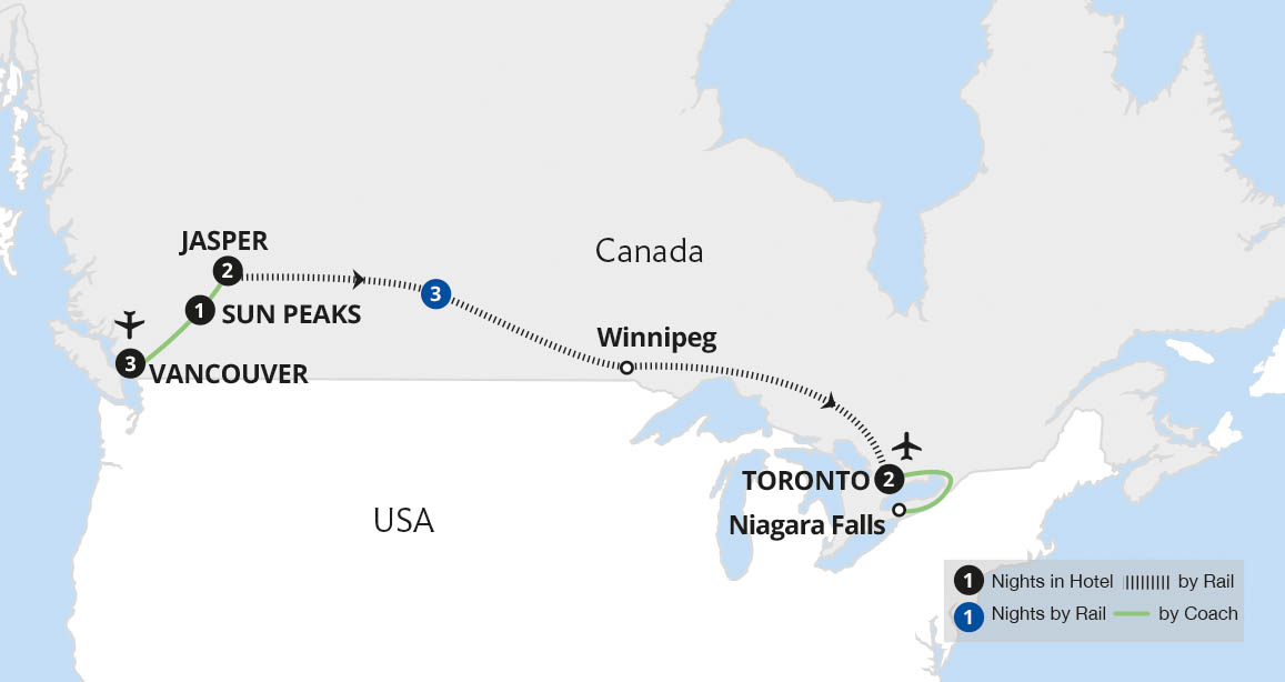 Uncover Canada's most amazing landscapes on this journey from the Pacific coast to the Great Lakes. Our exploration begins with a guided tour of Vancouver before touring the stunning Rocky Mountains from the mountain town of Jasper. Here, we admire awe-inspiring vistas including the Maligne River valley. An epic three-night journey from Jasper...
