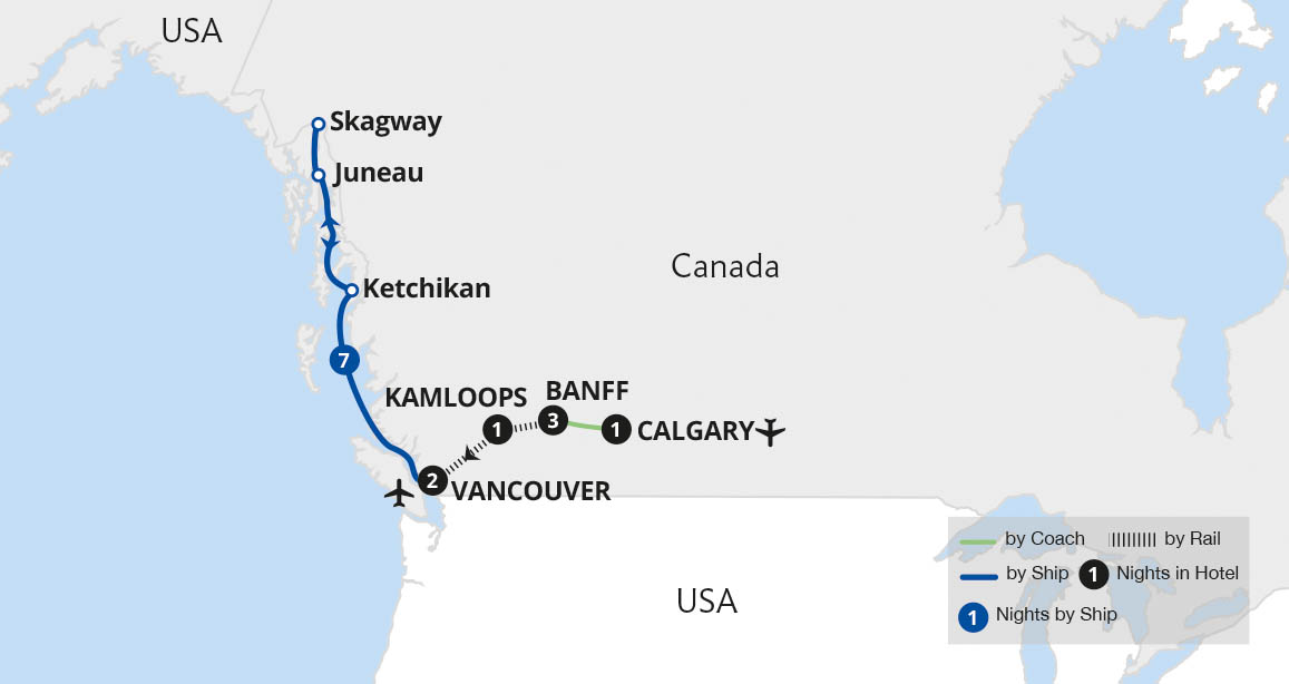 A spectacular discovery of natural wonders awaits on this exploration by land and sea. From the mountain town of Banff in the Canadian Rockies, we marvel at the spellbinding beauty of Lake Louise before boarding the iconic Rocky Mountaineer. This fantastic rail journey transports us to Vancouver, where we set sail on an unforgettable cruise. ...